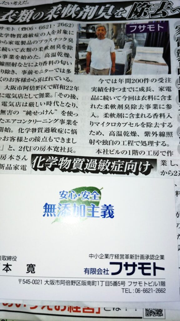 そんな折、平成28年(2016年)から始めた「新品家電品のプラスチック臭を脱臭する