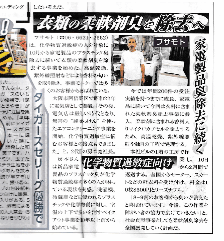そんな折、平成28年(2016年)から始めた「新品家電品のプラスチック臭を脱臭する